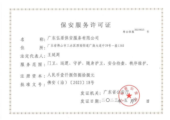廣東弘盾保安服務有限公司東莞分公司是經東莞市公安局嚴格審核,廣東省公安廳批準頒發《保安服務許可證》,在東莞市工商行政管理機關登記注冊的,依法開展門衛、巡邏守護、秩序維護、隨身護衛,安全檢查等綜合安保服務的專業保安服務公司... [詳細介紹]